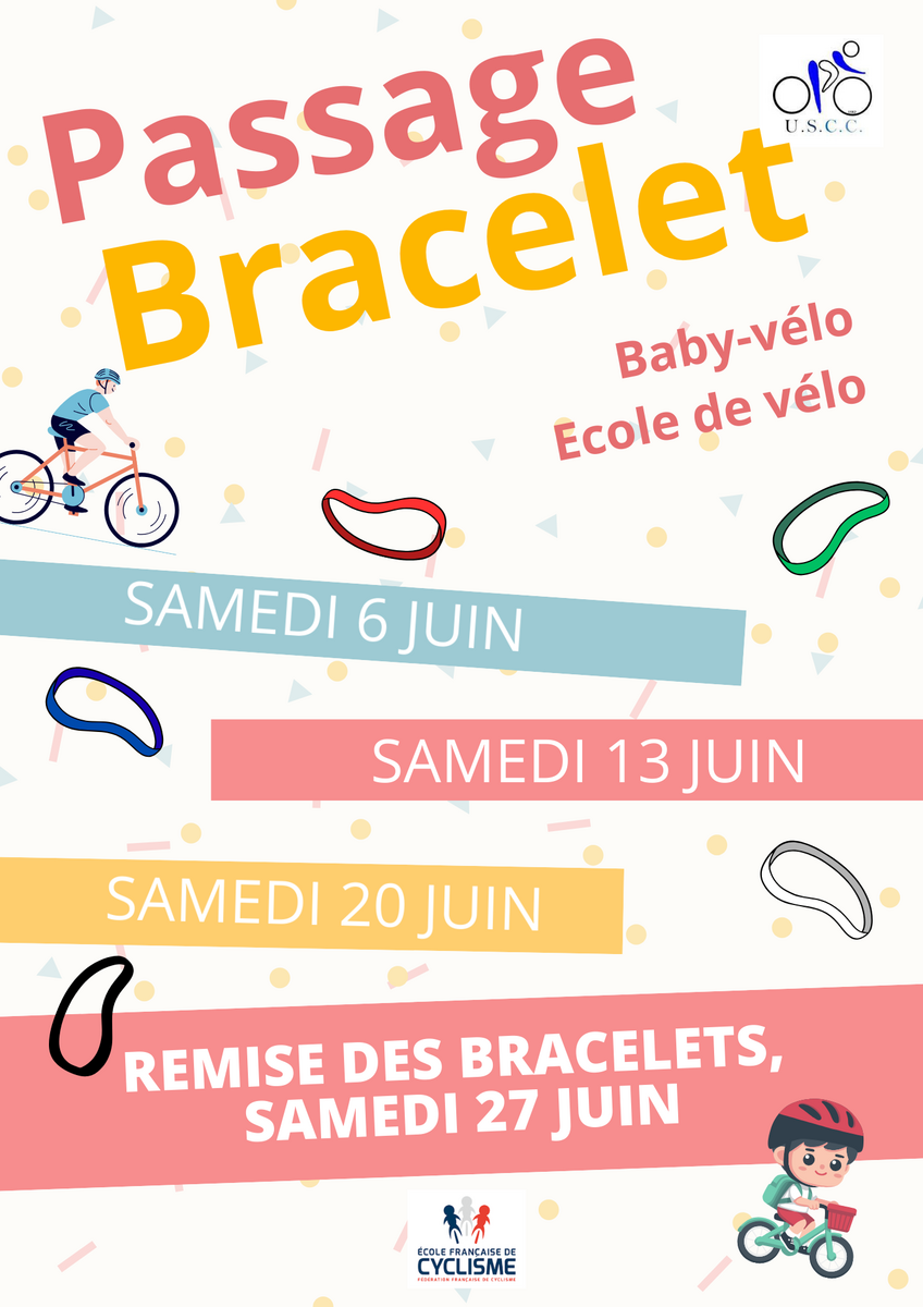 Ecole de vélo, passage de bracelets FFC
