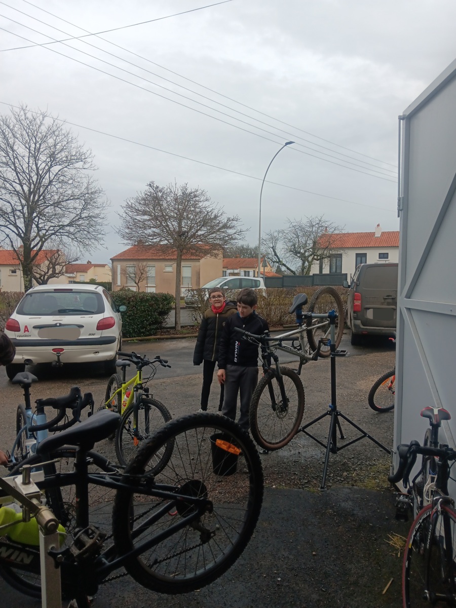 Quoi de mieux pendant les vacances que de se retrouver pour démonter et laver un vélo. C'était le programme de nos huit U13, ce vendredi. Avec au programme, apprentissage du lavage de vélo, démontage de roue et réparation de crevaison, puis exercices techniques route avec du passage de bidons.