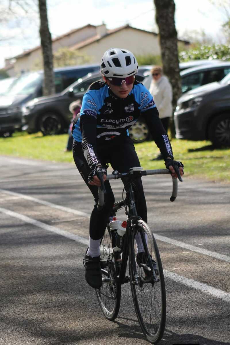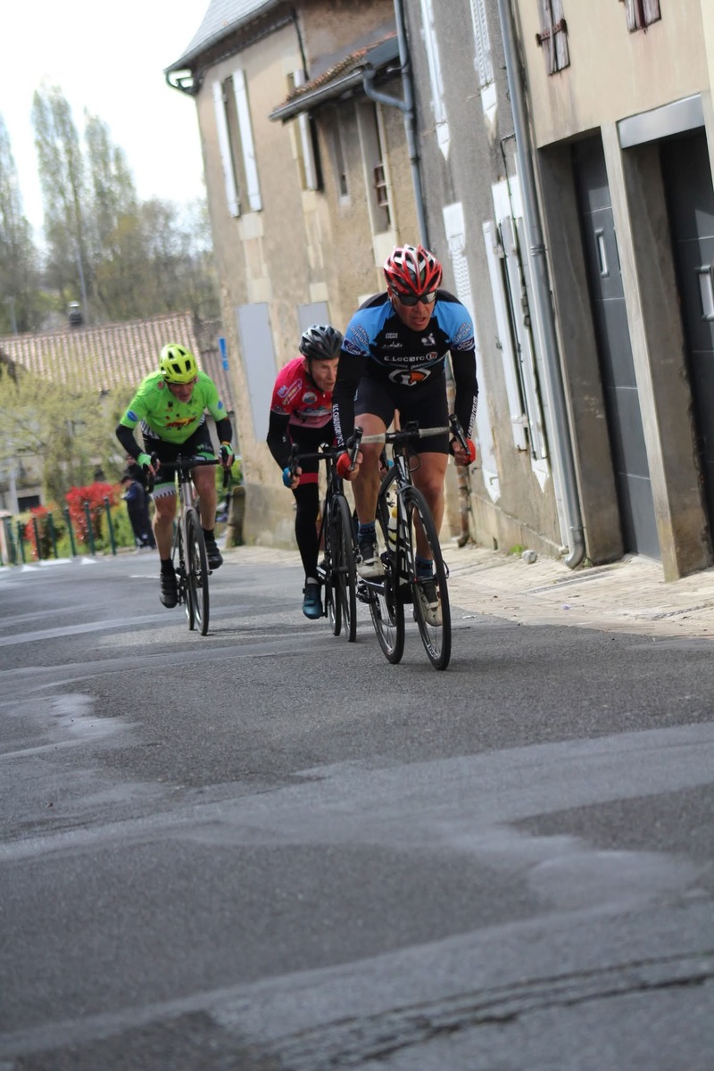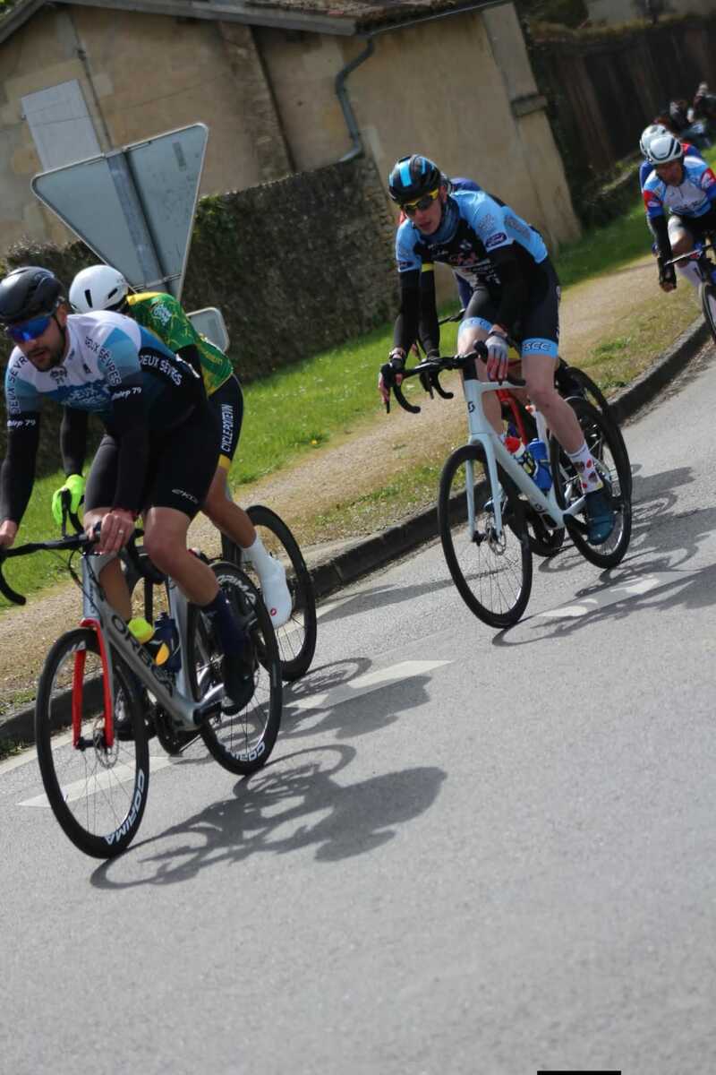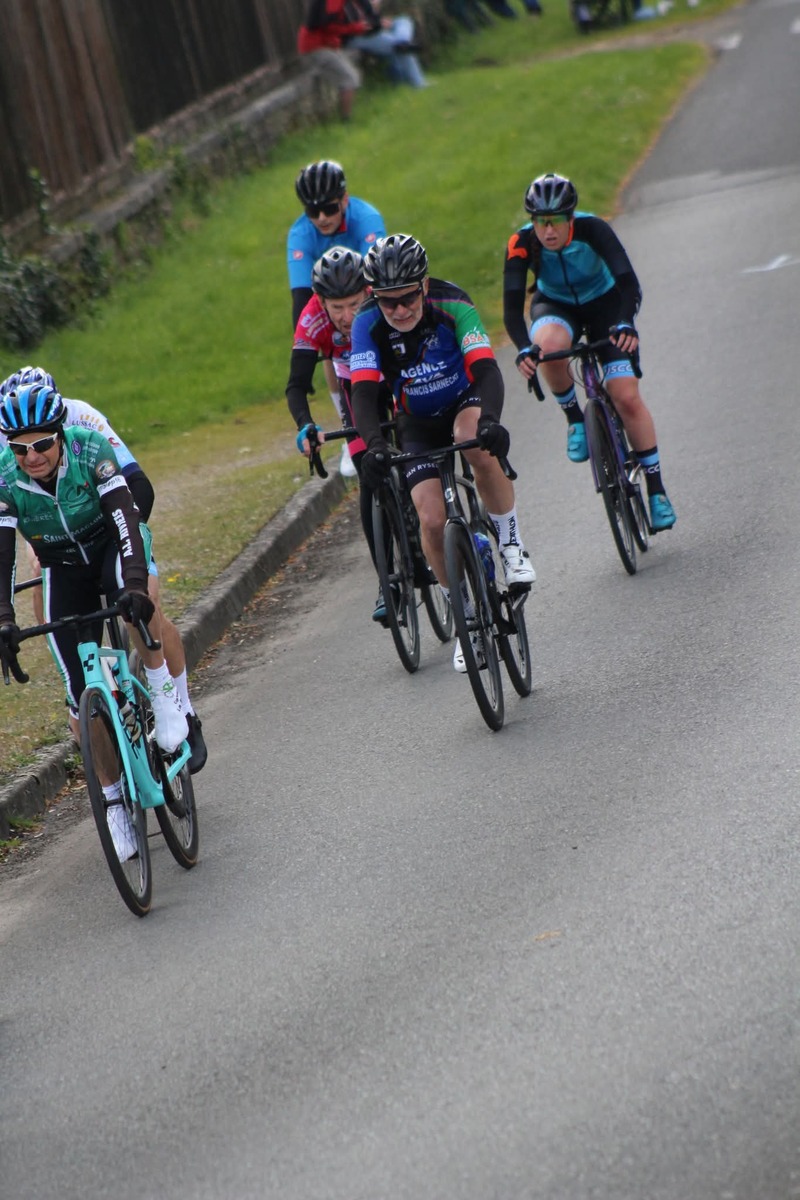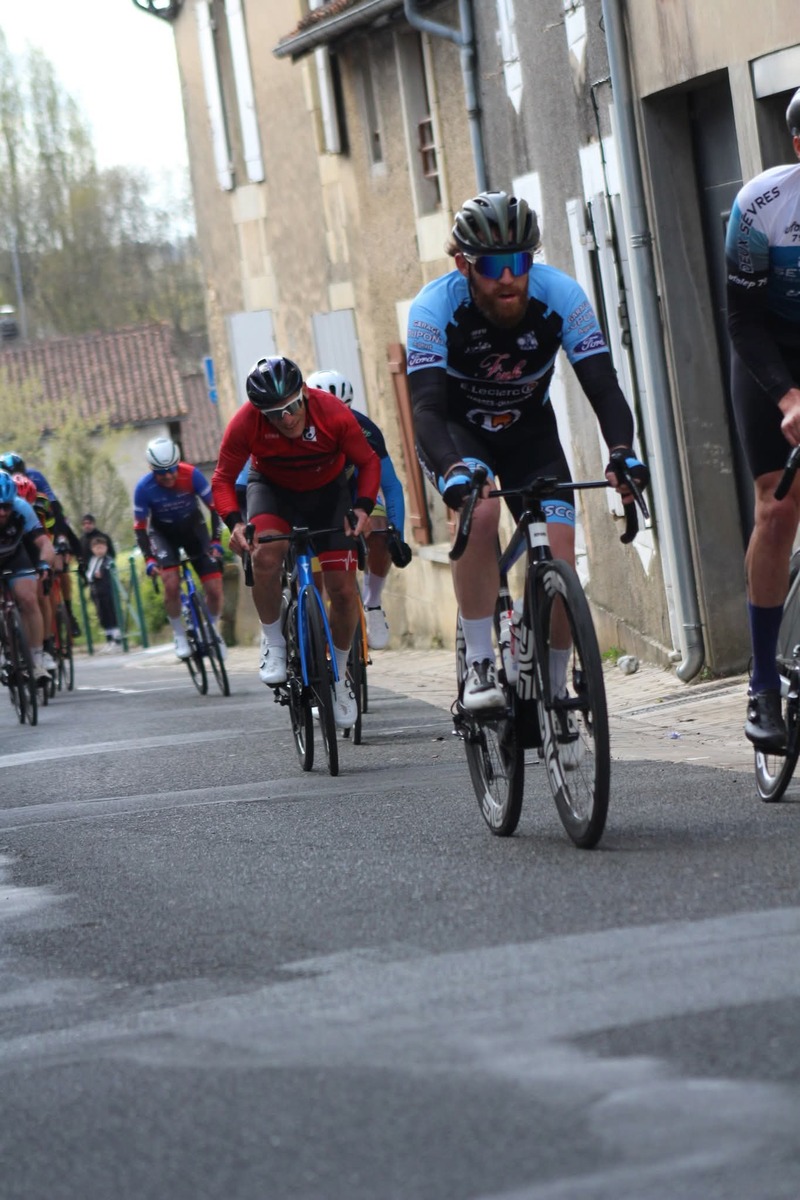 Ensuite, dimanche, c'était autour des grands de montrer les couleurs du club, à St. Maurice la Clouère en Ufolep. Treize coureurs au départ. Avec en 1ème catégorie, Hélier. En 2ème catégorie, Quentin, Rémi et Nicolas. En 3ème catégorie, Olivier, Romain D. et Hugues. En 4ème catégorie, Pascal P. et Serge. En U17, Baptiste, Hugo et Manon. Et en féminine, Louise.