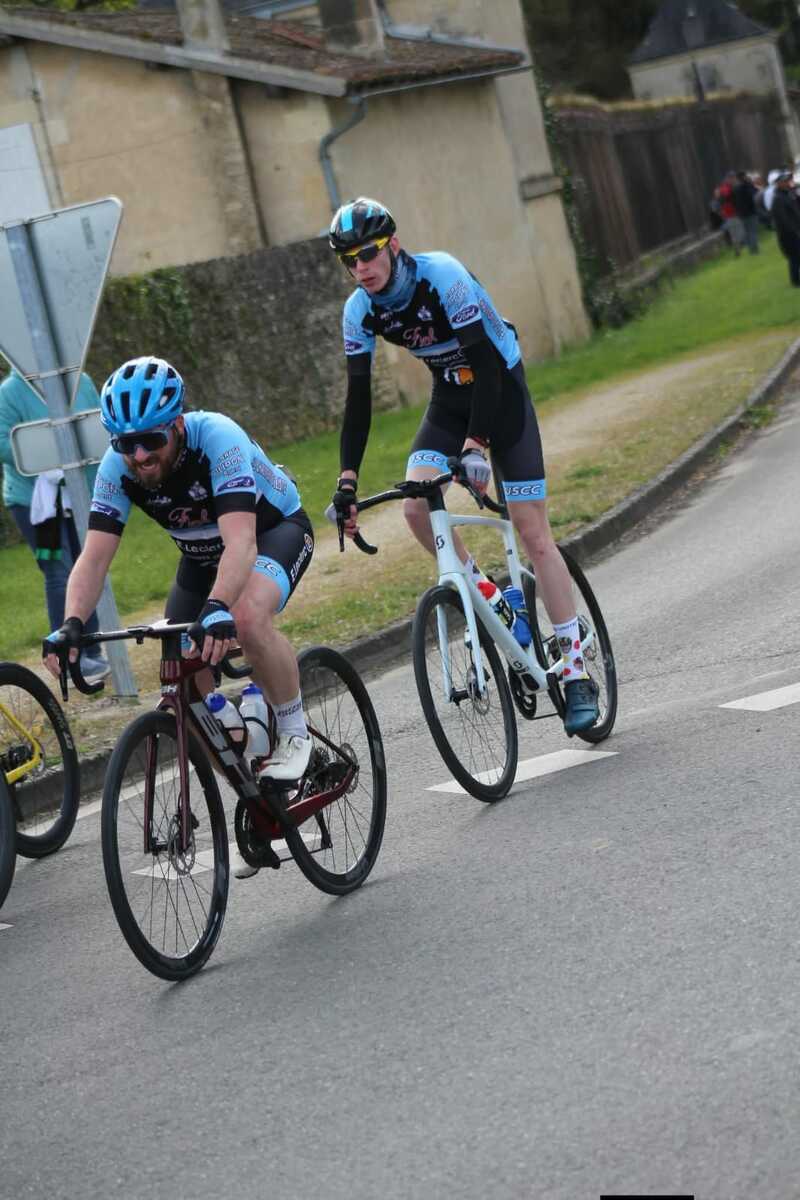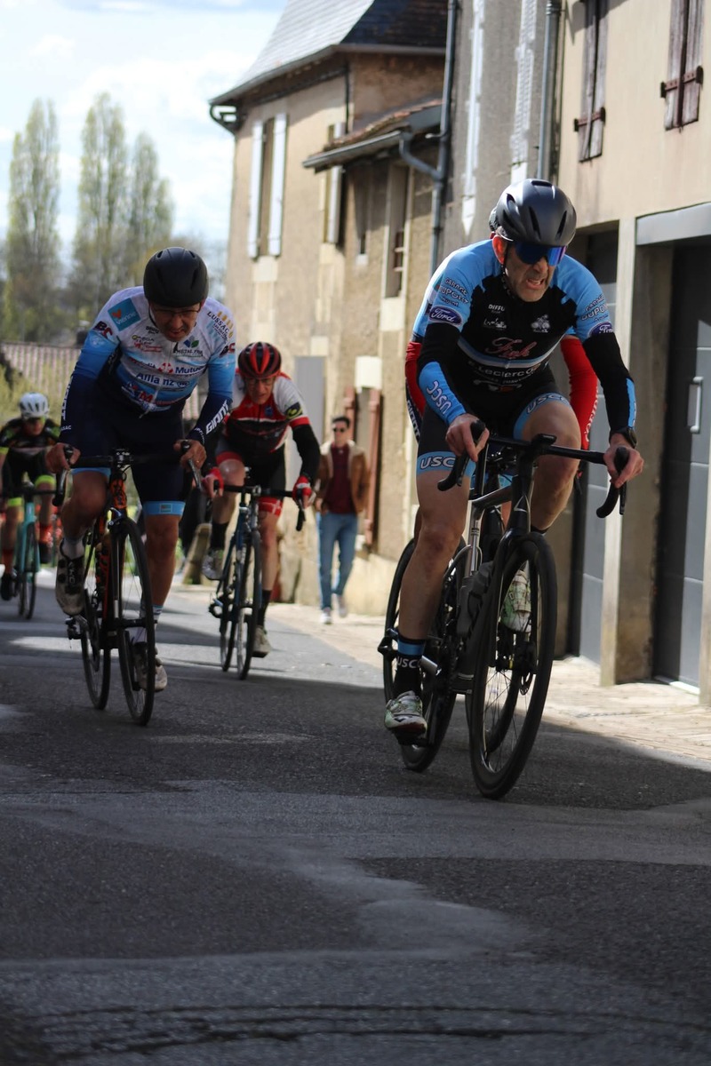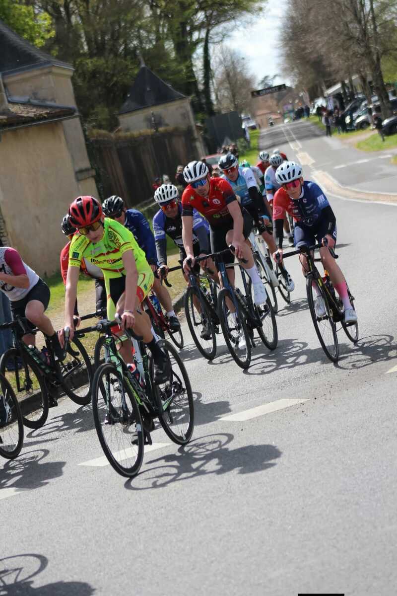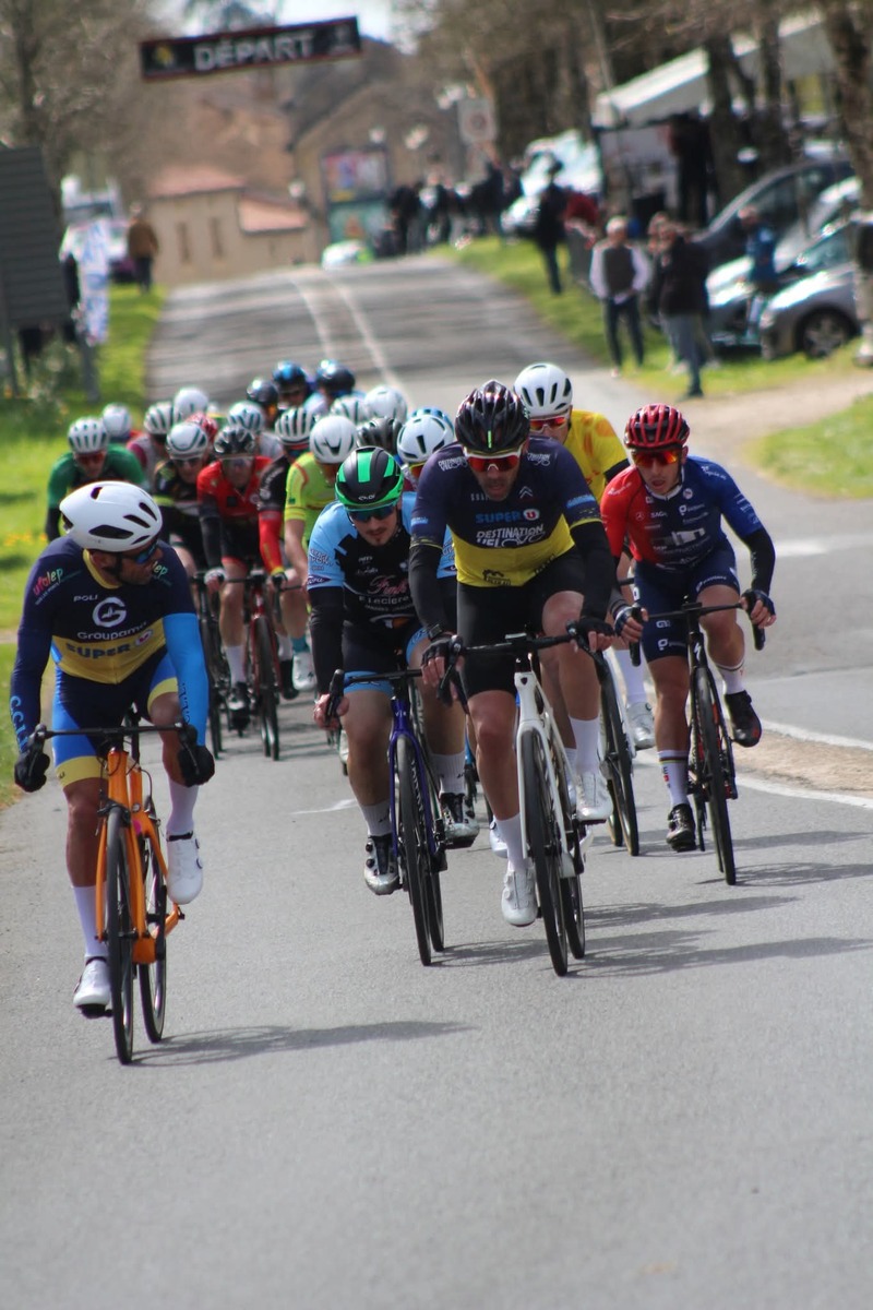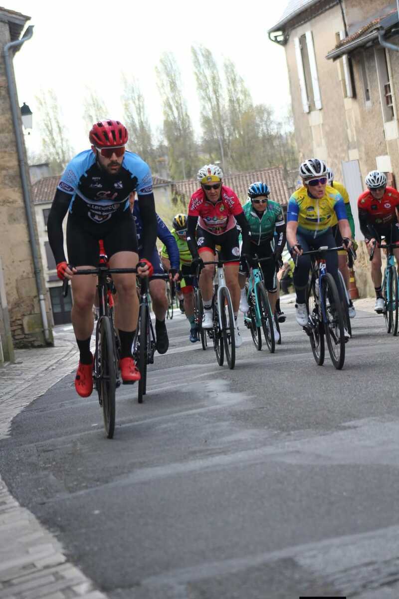 Ensuite, dimanche, c'était autour des grands de montrer les couleurs du club, à St. Maurice la Clouère en Ufolep. Treize coureurs au départ. Avec en 1ème catégorie, Hélier. En 2ème catégorie, Quentin, Rémi et Nicolas. En 3ème catégorie, Olivier, Romain D. et Hugues. En 4ème catégorie, Pascal P. et Serge. En U17, Baptiste, Hugo et Manon. Et en féminine, Louise.