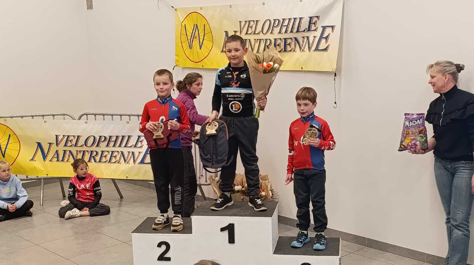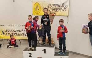 A commencer par nos jeunes de l'école de vélo présents samedi à Naintré. Six d'entre eux été présents, Enzo, Maurice, Séléna, Courtney, Timéo et Yvon. Vicoire de Enzo BRISSON, en U9, qui récidive après sa victoire à Châtellerault. Le club termine 7ème par équipe sur la journée, et vient prendre la 3ème place du Challenge Mozaïc.